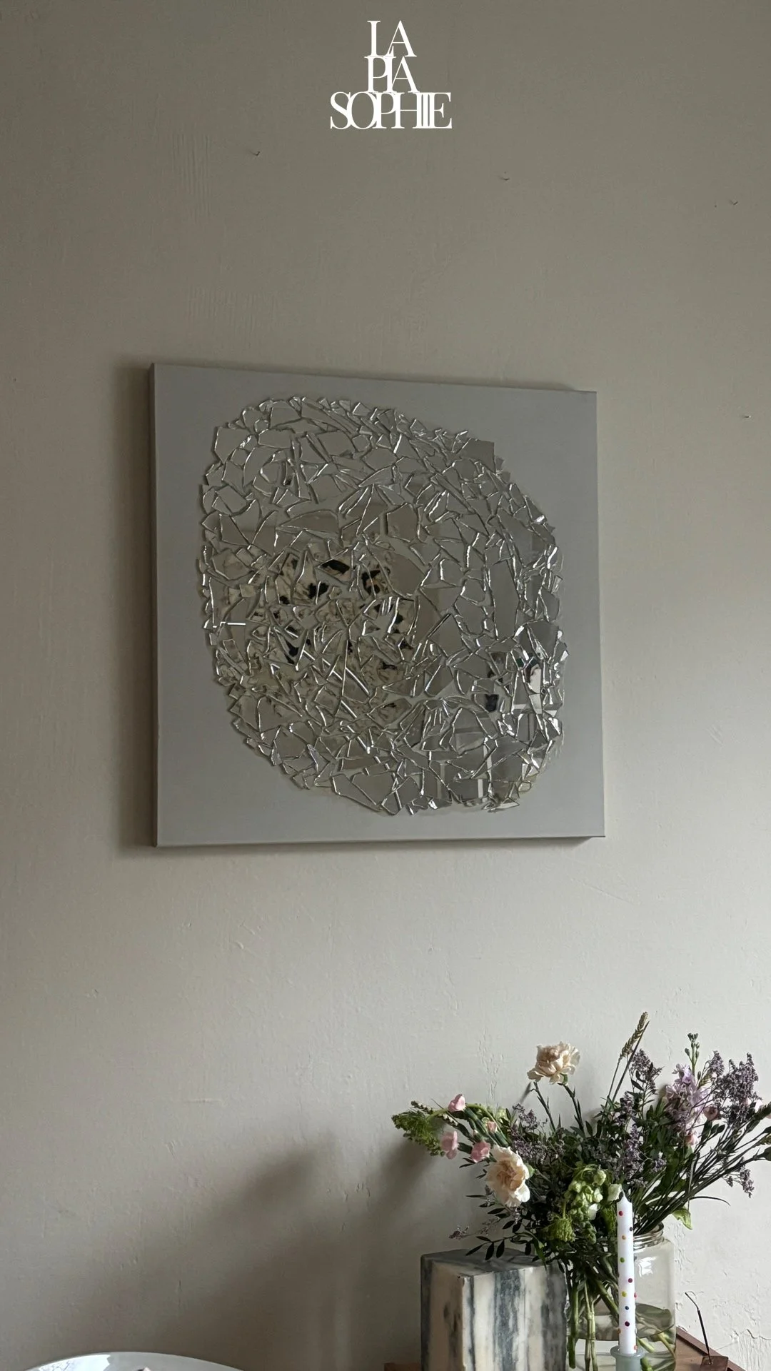 ‘Timeless Shine’ Original Mixed Painting on Canvas H60 x W60 cm SOLD This handcrafted work of art combines mirror mosaic with warm tones, creating a balance of light, texture, and tranquility. Depending on the angle of the light, subtle reflections emerge, lending the room a special sense of depth and vibrancy. 450 EURO (shipping included) Click here to purchase